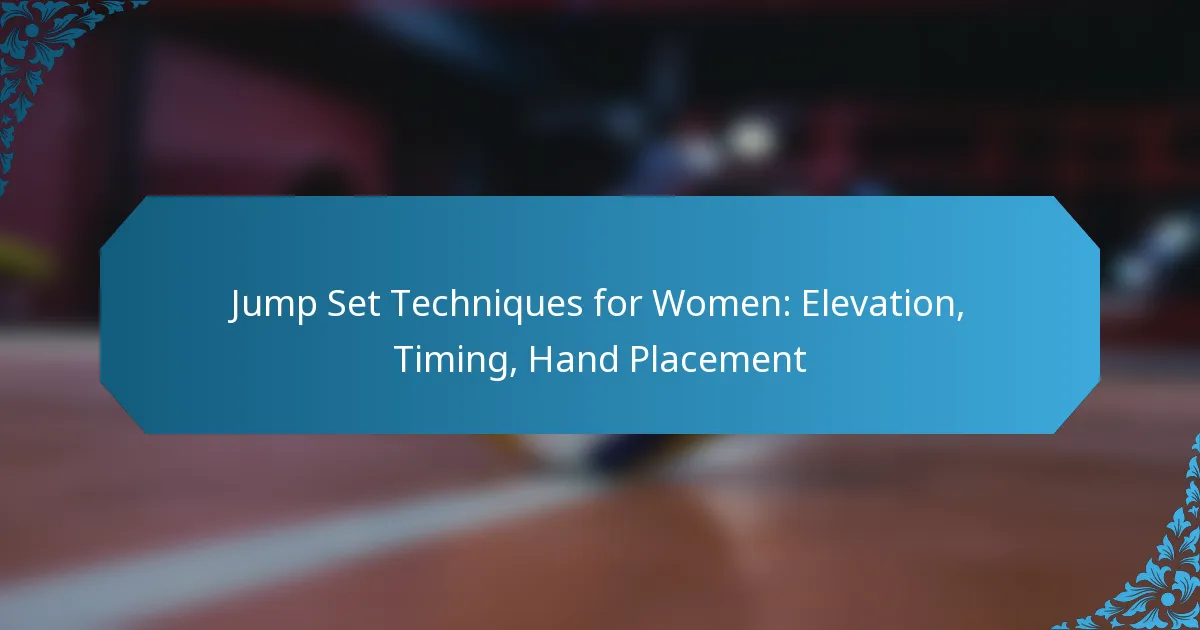 Jump set techniques for women in volleyball are essential for executing effective offensive plays, relying on a blend of elevation, timing, and hand placement. Mastering these skills not only enhances performance but also caters to the unique physiological characteristics of female athletes, allowing for improved accuracy and power in sets.