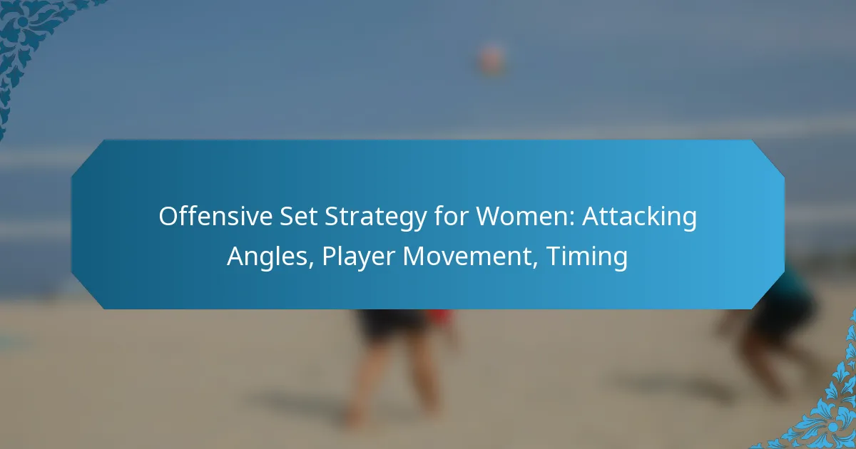 Offensive set strategies in women’s sports are essential for creating scoring opportunities through structured approaches that emphasize player movement, attacking angles, and timing. By mastering these elements, teams can effectively penetrate defences and enhance their chances of success during gameplay. Understanding how to utilize various angles and coordinate movements allows players to exploit defensive weaknesses and maintain a dynamic offensive flow.